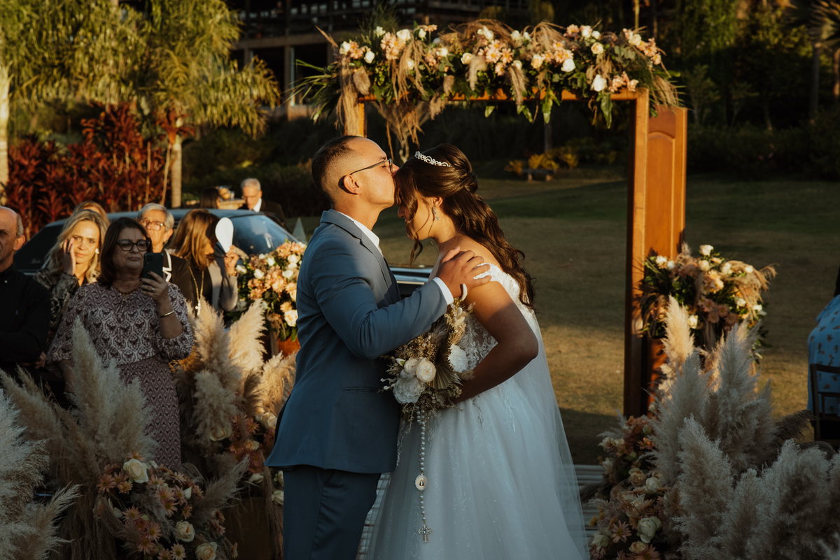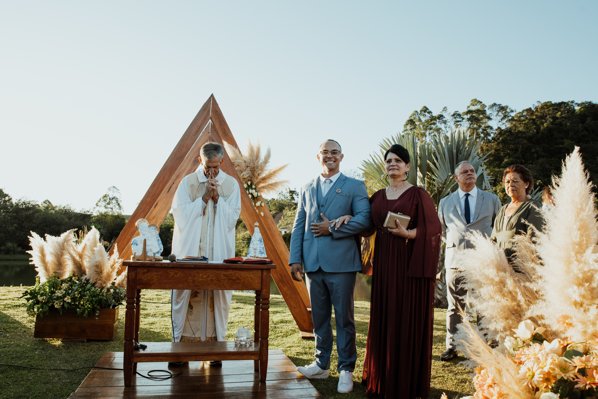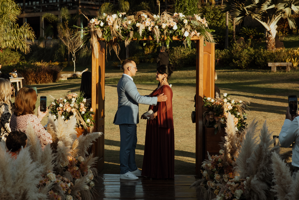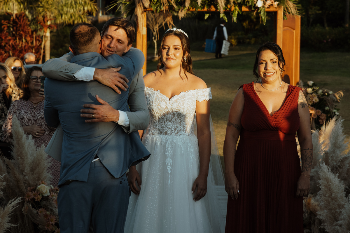 Em meio à natureza, com o cenário aberto e uma luz que parecia cuidadosamente escolhida, cada detalhe contribuiu para um dia intenso, verdadeiro e cheio de emoção. Os olhares trocados, os sorrisos contidos, as lágrimas que escaparam sem pedir licença… tudo aconteceu de forma natural, do jeito que as melhores histórias acontecem.