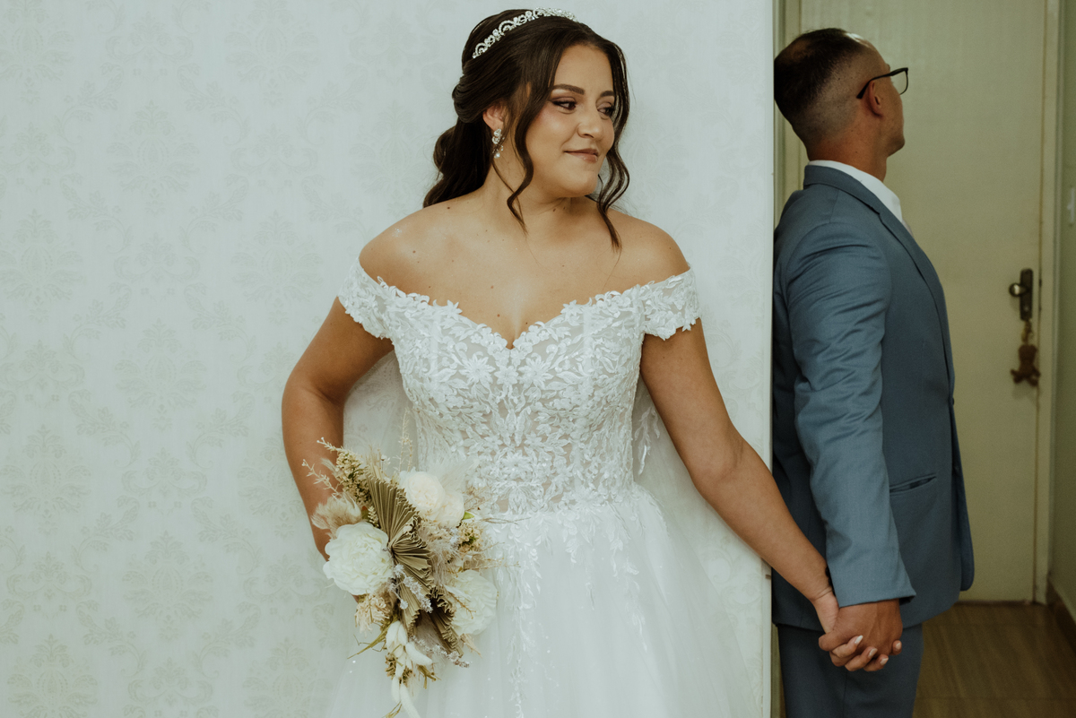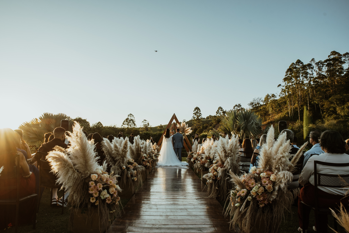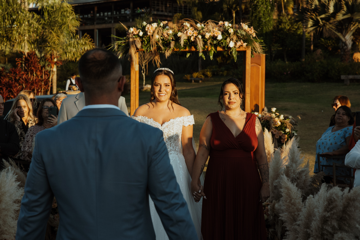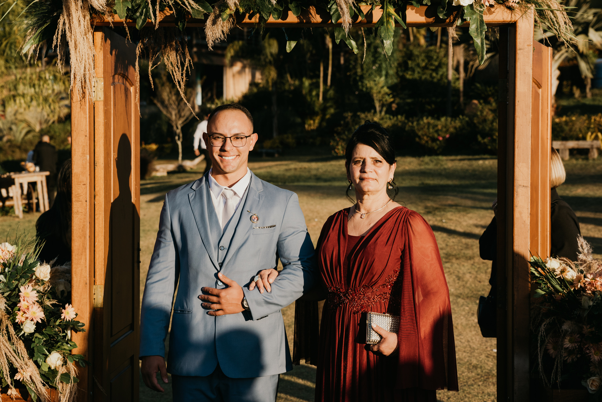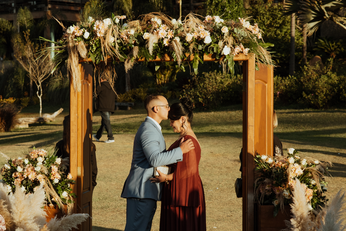 Em meio à natureza, com o cenário aberto e uma luz que parecia cuidadosamente escolhida, cada detalhe contribuiu para um dia intenso, verdadeiro e cheio de emoção. Os olhares trocados, os sorrisos contidos, as lágrimas que escaparam sem pedir licença… tudo aconteceu de forma natural, do jeito que as melhores histórias acontecem.