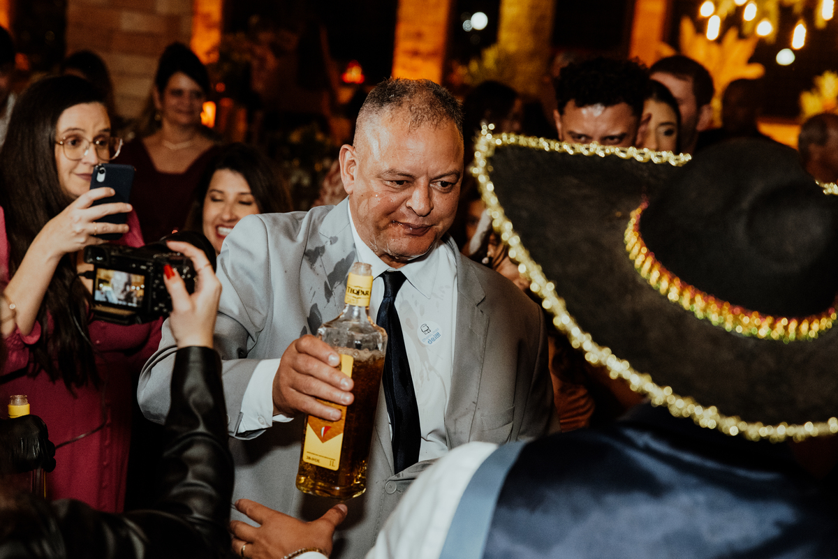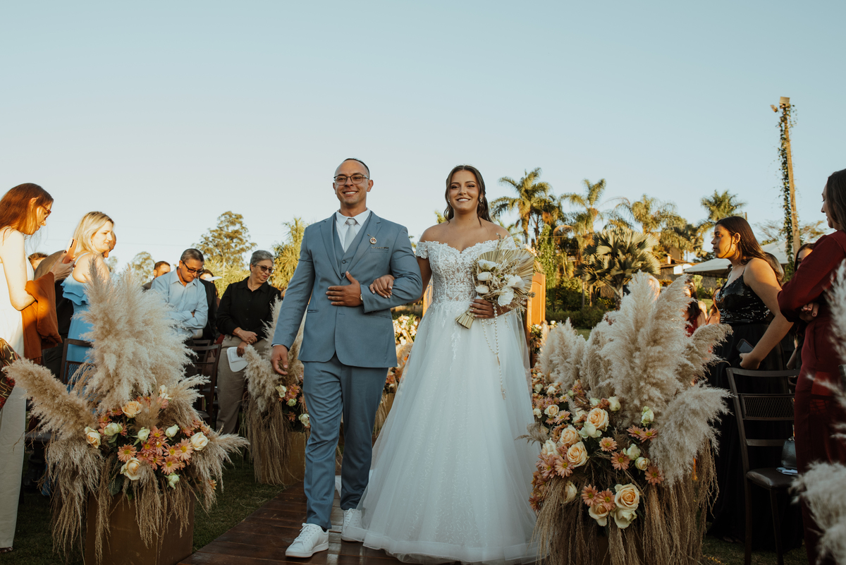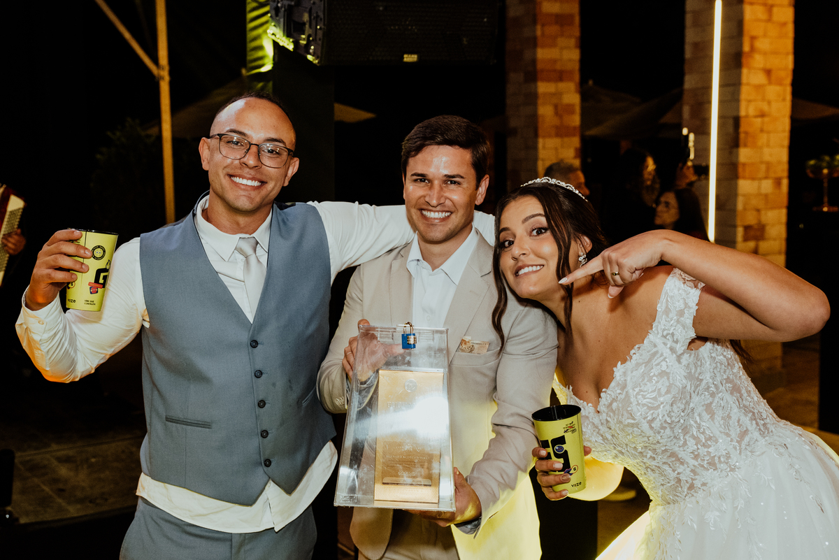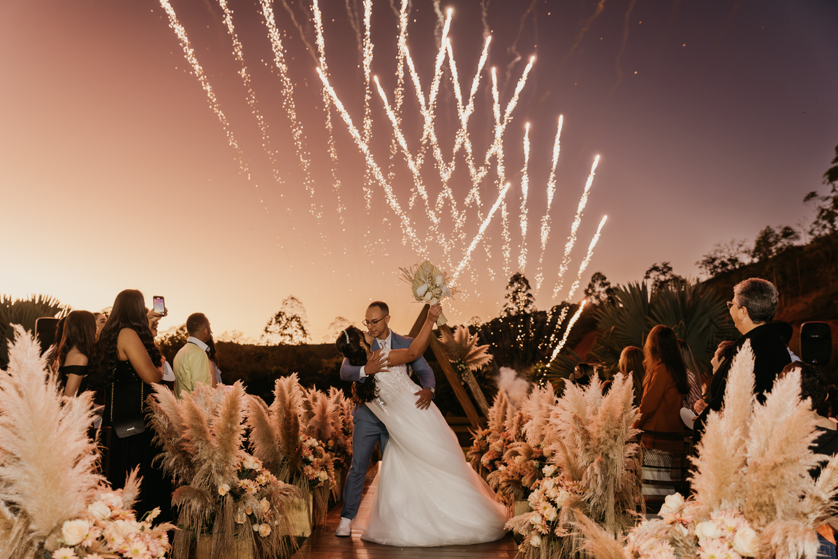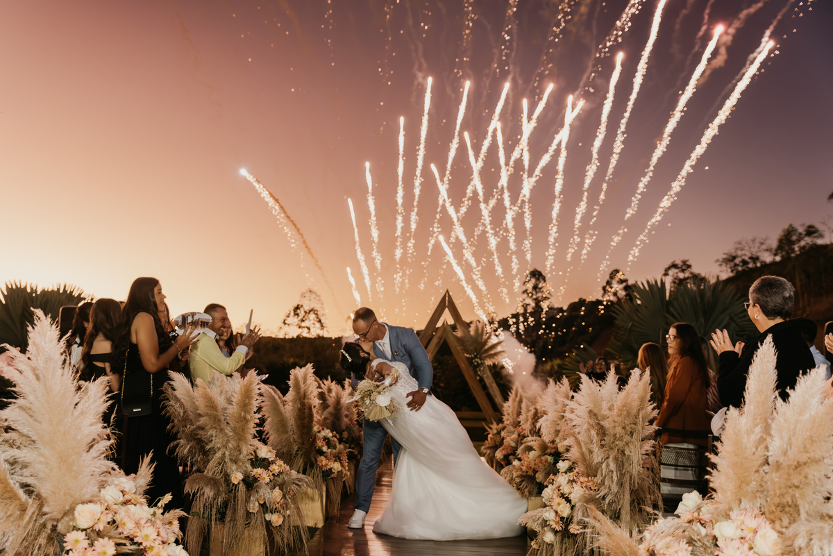 E quando parecia que a emoção já tinha alcançado o ponto máximo, veio a saída dos noivos: fogos de artifício iluminando o céu, aplausos, sorrisos largos e uma energia contagiante. Um encerramento digno de cinema.