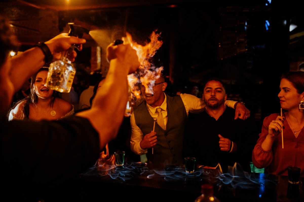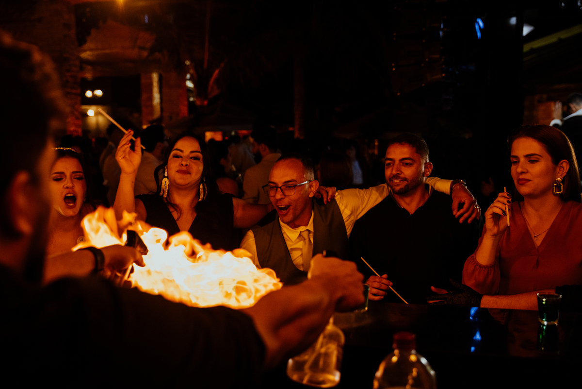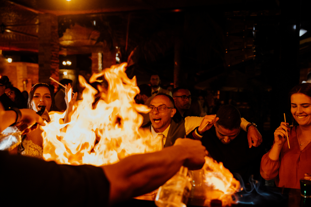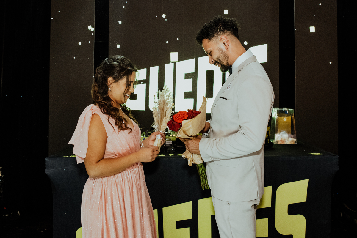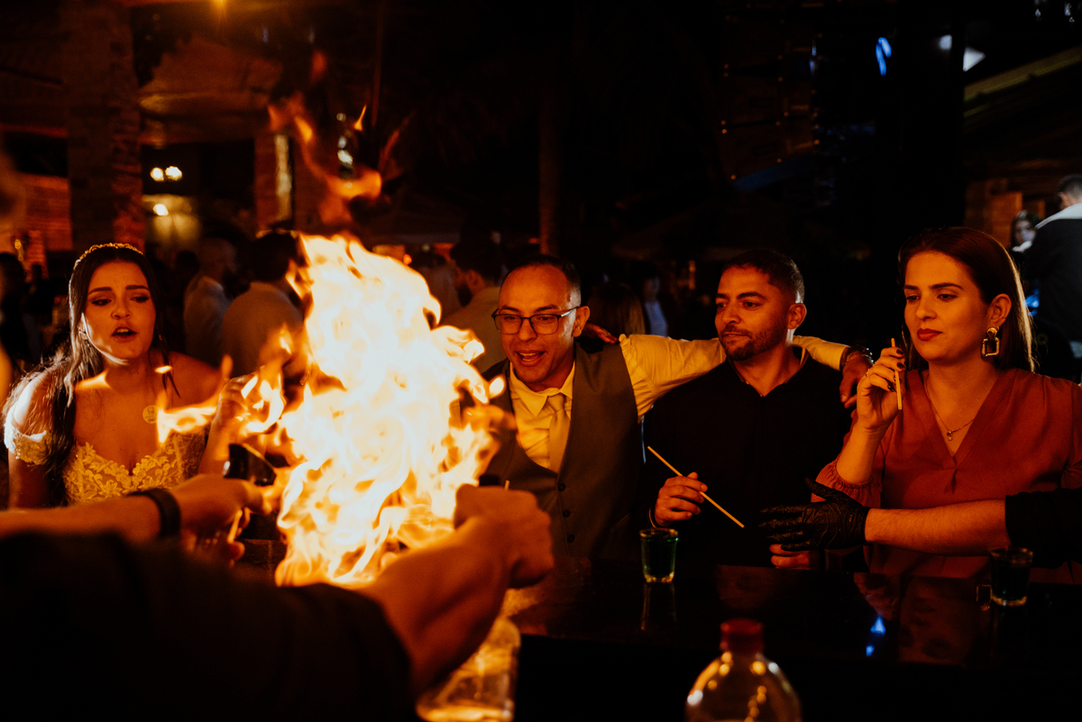 E quando parecia que a emoção já tinha alcançado o ponto máximo, veio a saída dos noivos: fogos de artifício iluminando o céu, aplausos, sorrisos largos e uma energia contagiante. Um encerramento digno de cinema.