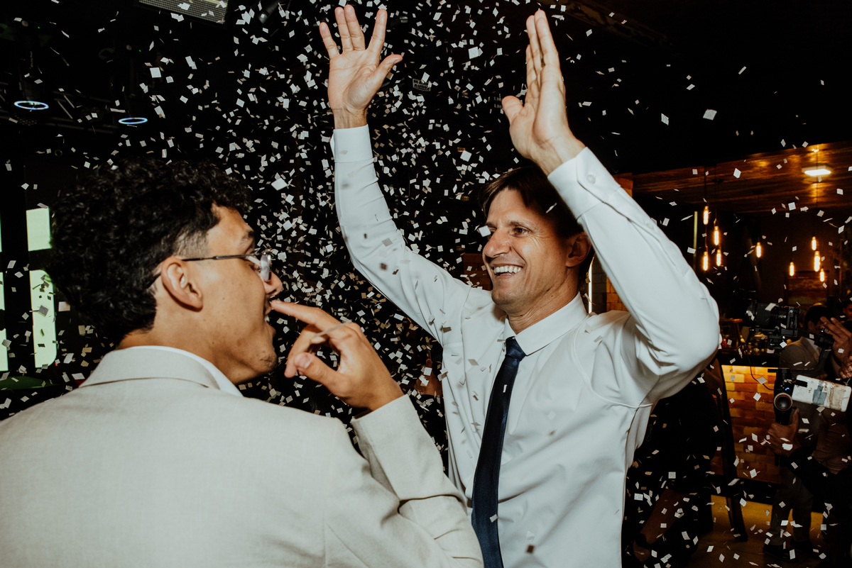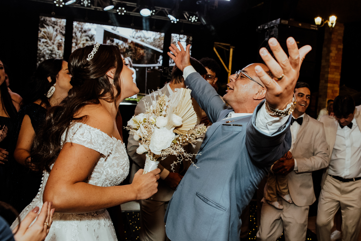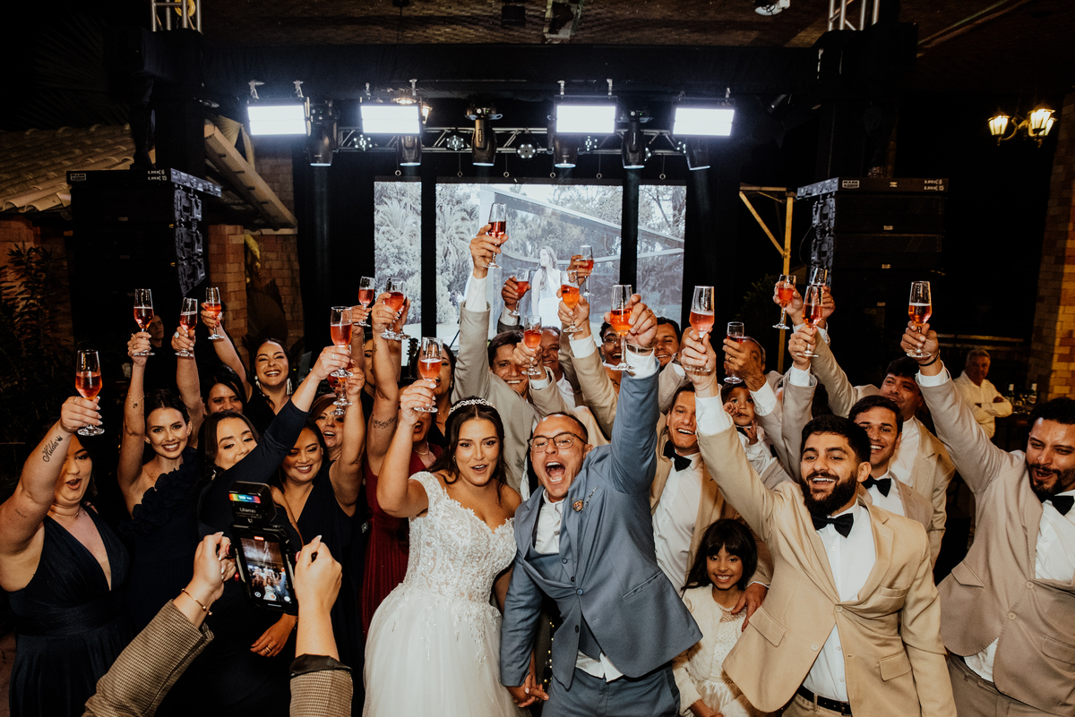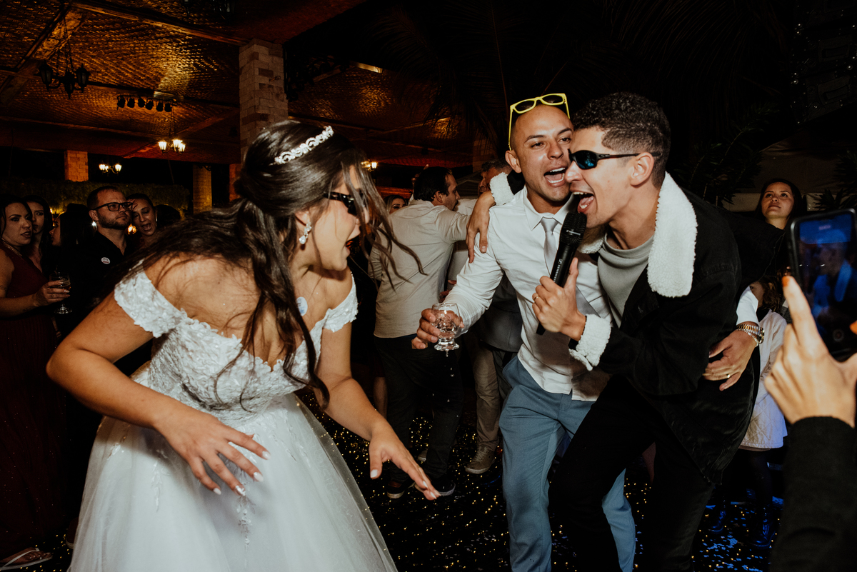 A festa foi simplesmente inesquecível. Pista cheia, convidados animados do início ao fim, risadas, dança e muita celebração. Um daqueles casamentos onde ninguém queria ir embora — e nós, como fotógrafos, só queríamos continuar registrando cada instante.